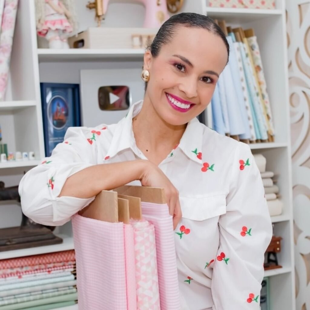 2. Faça o quilting (costura decorativa) para prender as camadas. No vídeo, ela faz ondas (quilting orgânico), mas pode ser reto ou matelassê.